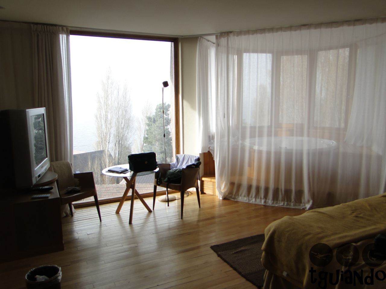 http://www.designsuites.com/bariloche/), e como estávamos muito cansados, resolvemos pedir algo para comer no quarto mesmo, e deixar o jantar no centro de Bariloche para os próximos dias.