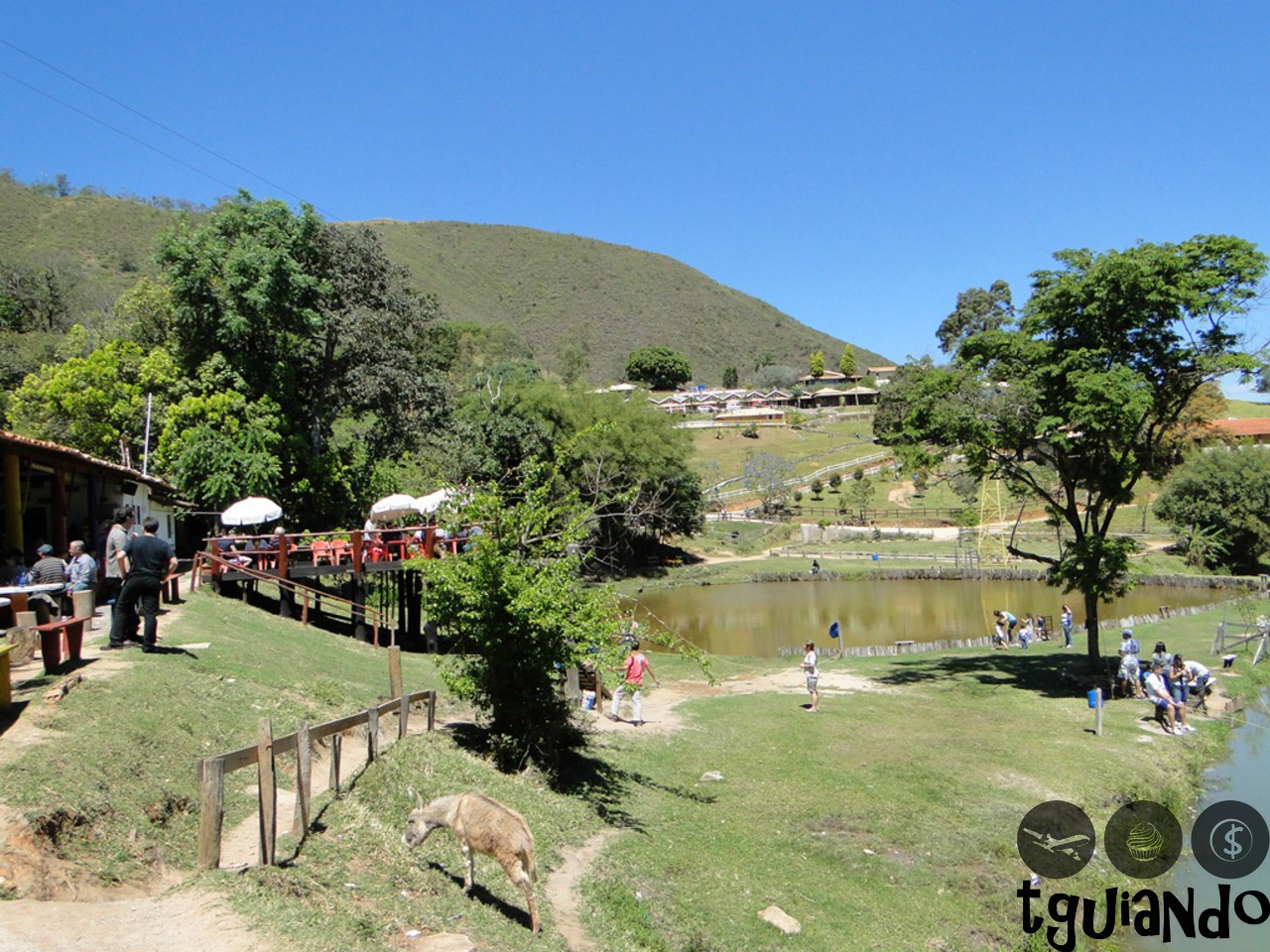 Uma fazenda com diversos animais, playground, pescaria, tirolesa, arvorismo, escalada, passeios a cavalos, trenzinho, quadricíclo e restaurantes. (