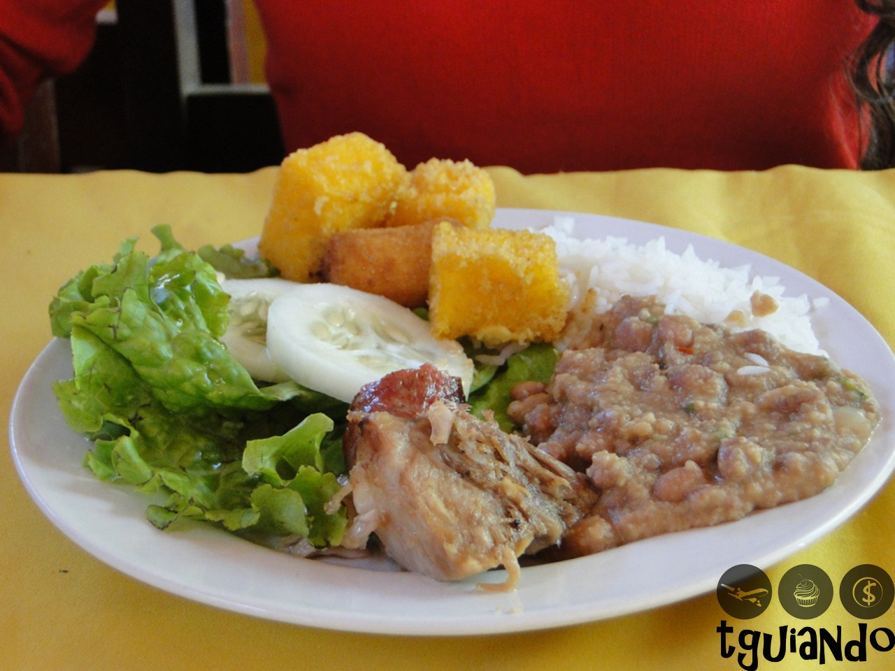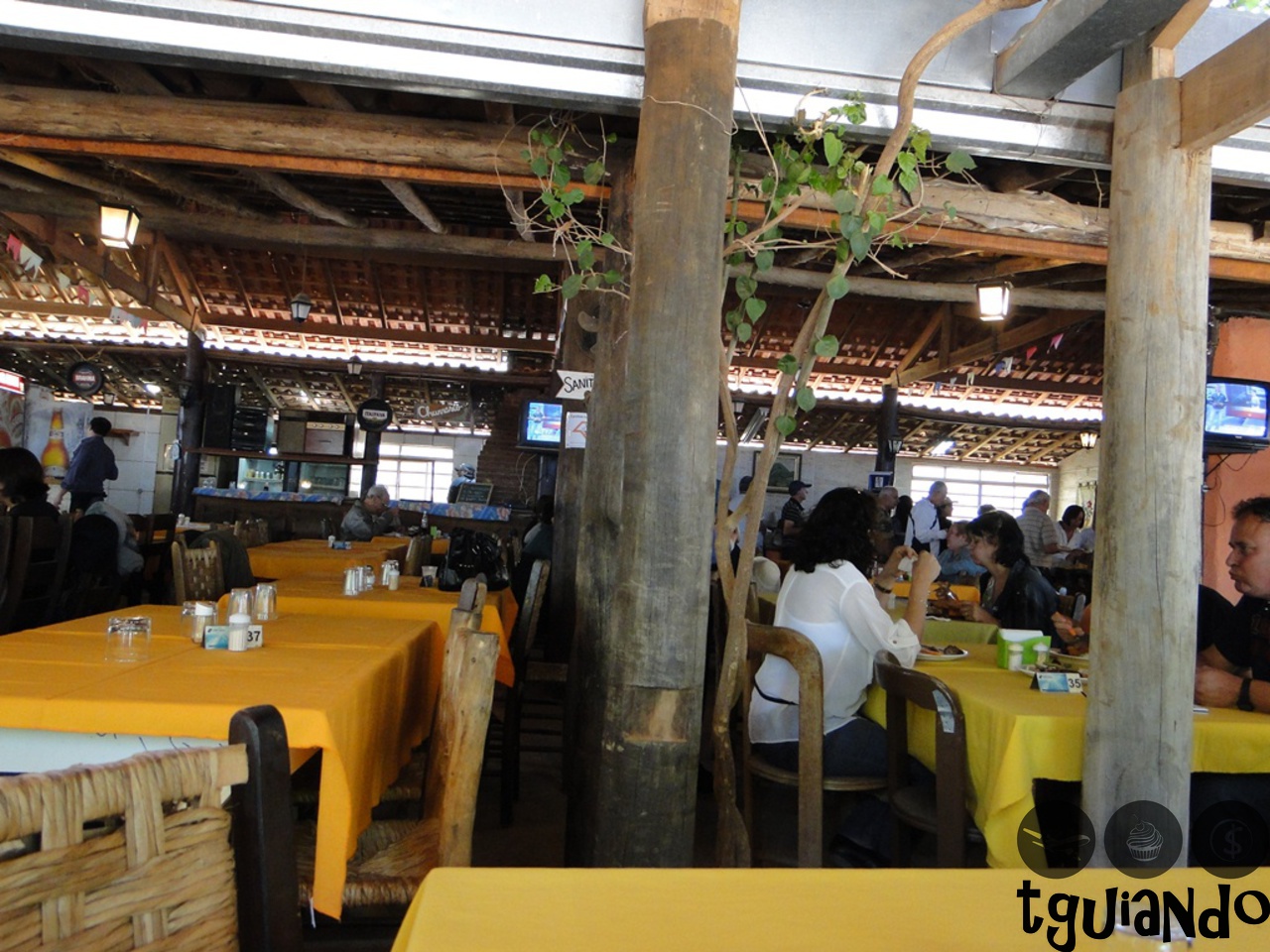 Aproveitamos para fazer uma pausa para o almoço. Comida e sobremesa à vontade por R$ 17,00 por pessoa.