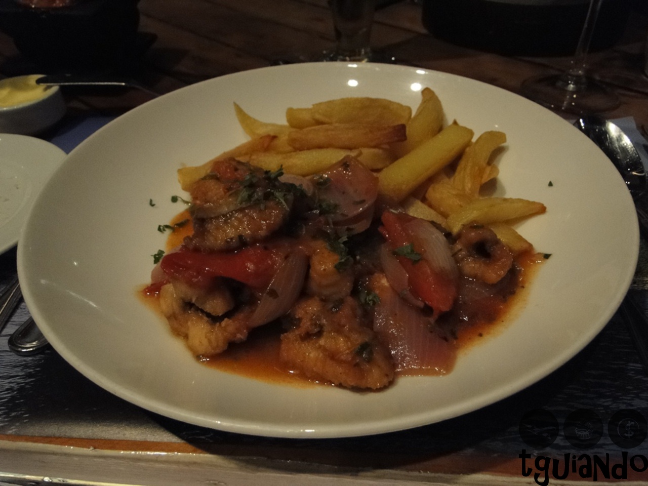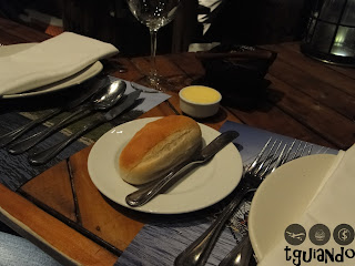 Comemos pães de entrada (cortesia), peixe como prato principal e sobremesa com brownie, sorvete e algo parecido com trufa (tudo de chocolate). O valor foi 40.000 pesos.