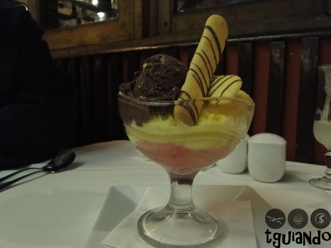 Churrascaria tradicional com ambiente descontraído, garçons atenciosos e boas carnes. O jantar para dois com entrada, além dos pães de cortesia, pratos principais, sobremesa e bebidas (refrigerante, cerveja e pisco) ficou no valor de 23.000 pesos.
