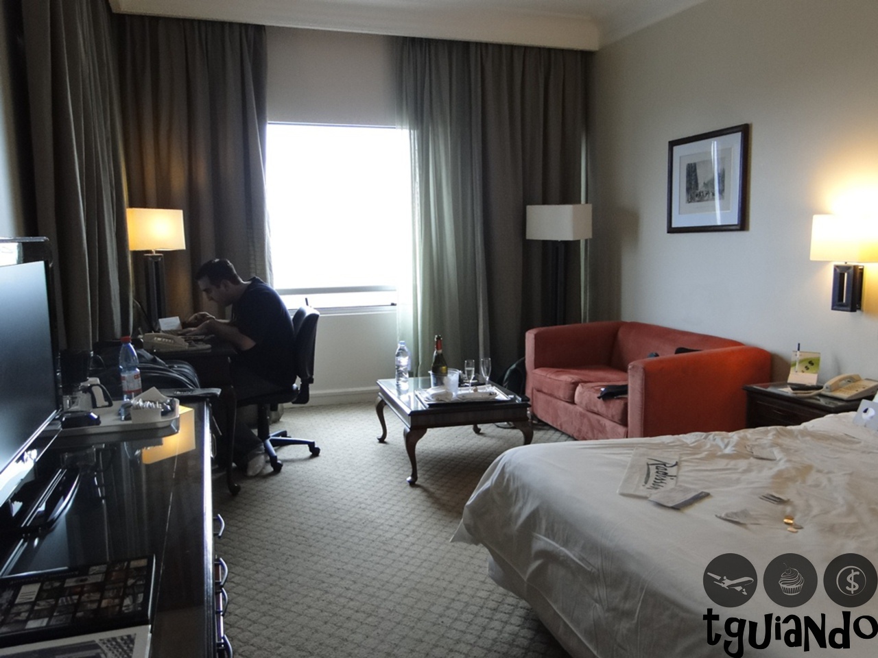 Escolhemos o Hotel Radisson Plaza Santiago (http://www.radisson.cl/) pelo Booking.com (http://www.booking.com/), realizamos a reserva e solicitamos através do e-mail para ficarmos em um andar alto. Chegando lá, fomos informados que nosso quarto era no 15º andar.