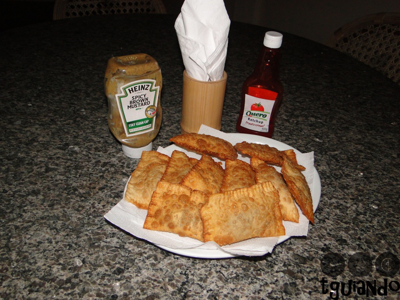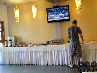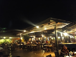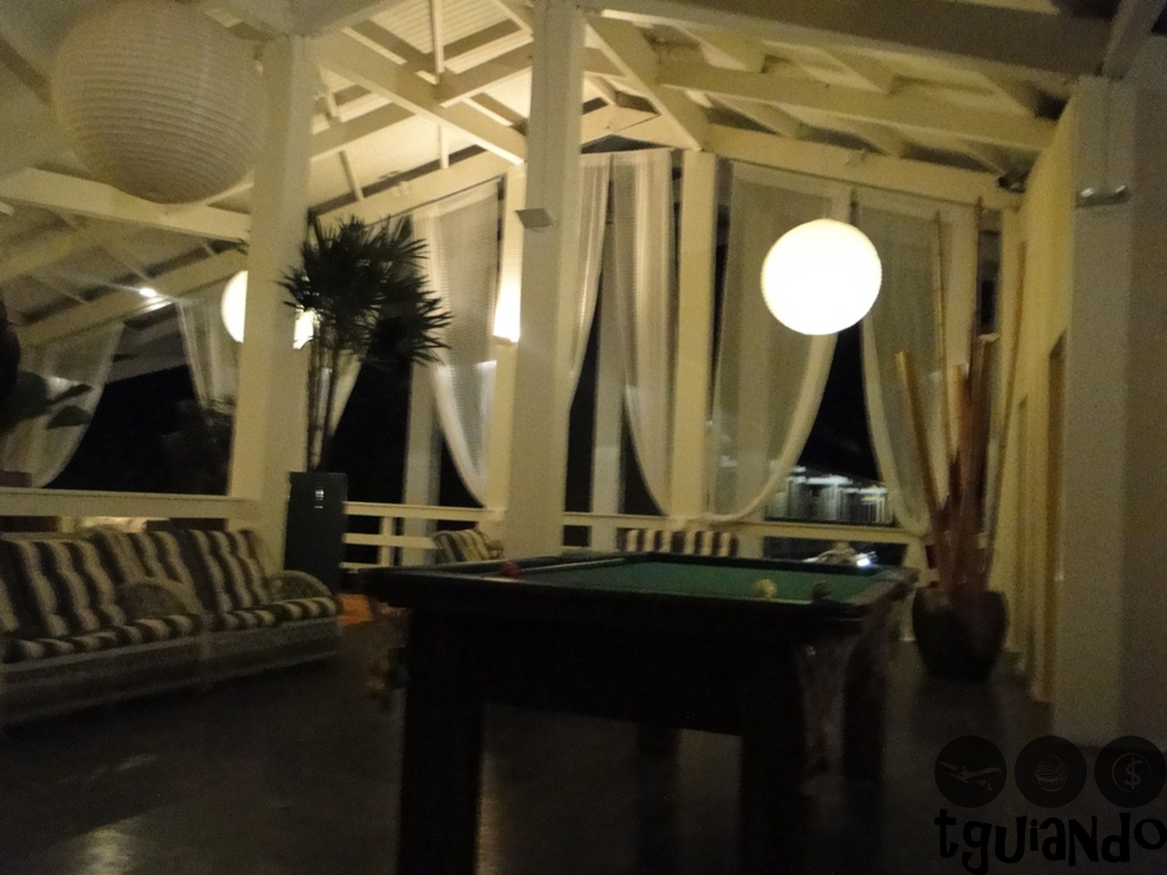 Depois de um dia de praia, voltamos para o hotel e, após os banhos tomados, ficamos na área de lazer do hotel jogando sinuca, antes de sairmos para jantar. Pedimos uma porção de pastéis de carne enquanto jogávamos e descansávamos nos sofás.