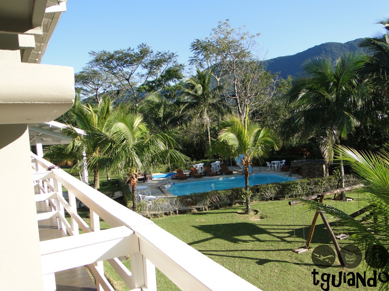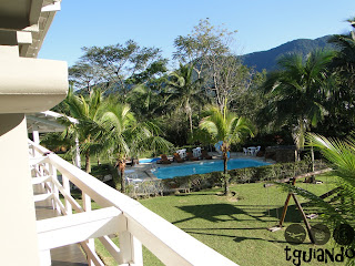 Na manhã de sábado, ao acordarmos, tínhamos a bela visão do jardim e da piscina do hotel.