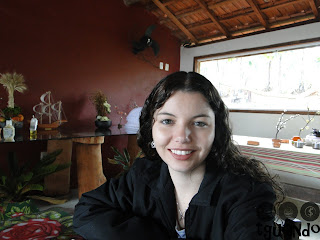 O local é até "charmosinho", bem rústico, com decoração bem singular com panos estampados, vigas de madeira, janelas grandes de vidro para apreciar a natureza.