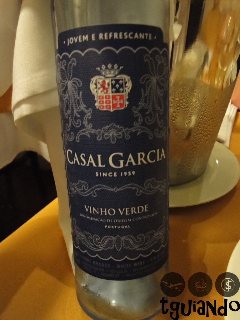 Para acompanhar o jantar, aceitamos a sugestão do garçom e pedimos o Vinho Verde Casal Garcia, com preço de R$ 48,00 a garrafa.