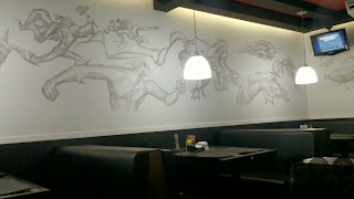 De fácil acesso e fachada que chama atenção de quem passa por perto, o Burgguer's conta com ambiente descontraído e paredes decoradas com imagens de super-heróis.