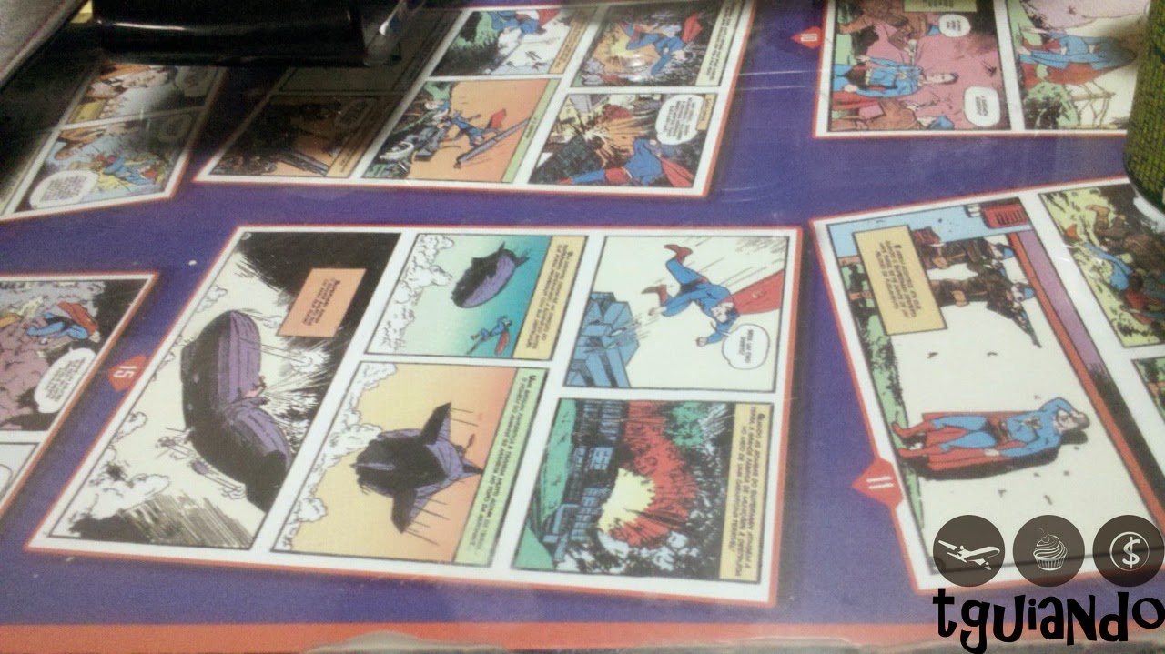 Faz parte da decoração as histórias em quadrinhos que ficam embaixo do tampo de vidro da mesa...