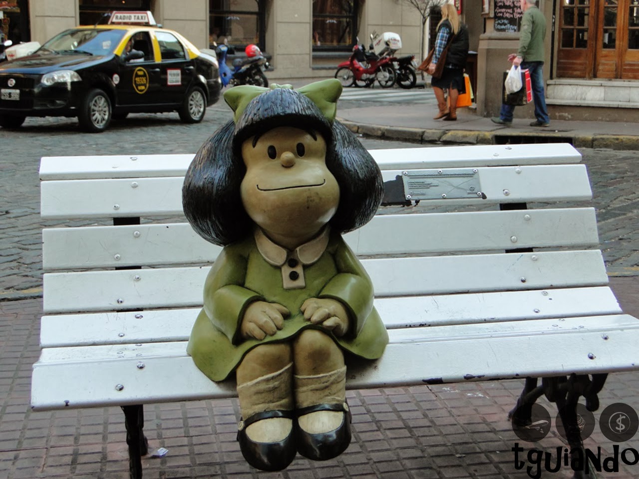 A Mafalda é uma criação do artista Quino, que vivia na época exatamente no prédio que fica nessa esquina. Ela é a personagem principal que interage com várias outras crianças, como Felipe, Manolito, Susanita e Libertad. As tiras, reunidas em vários livros, foram publicadas entre 64 e 73, ano em que Quino afirmou que tinha ficado sem ideias e deixou de escrever as histórias.