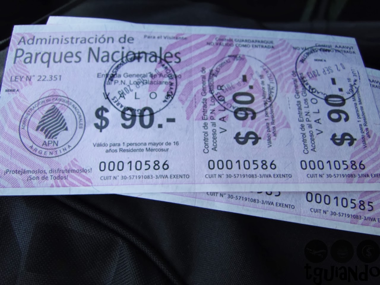 Ao chegar na entrada do Parque Nacional Los Glaciares é necessário pagar a taxa de entrada do parque, que tem o valor de AR$ 90,00 para estrangeiros residentes de países do Mercosul.