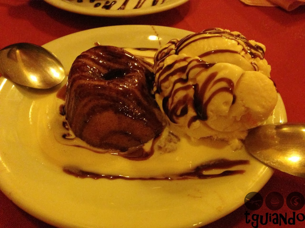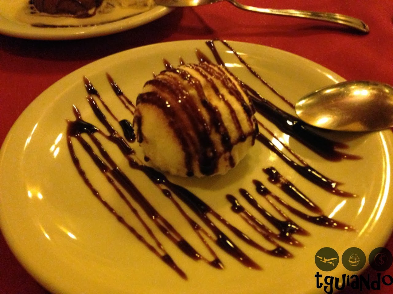 ValoresPedimos 2 sorvetes italiano (1 Tartufo preto: creme ao marsala e sorvete de chocolate, recoberto com chocolate em pó e castanha de caju e 1 tartufo branco: sorvete de coco recheado com sorvete de chocolate e recoberto com flocos de coco) e 1 Petit Gateau de doce de leite, diferente, mas gostoso!!