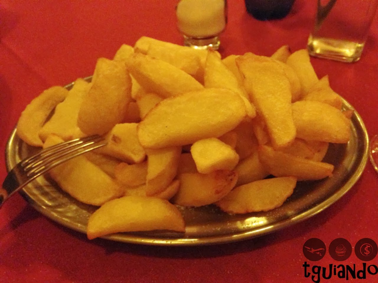 Escolhemos o Filé Mignon mini à parmegiana com fritas e, para acompanhar, um vinho Malbec 2010, Norton.