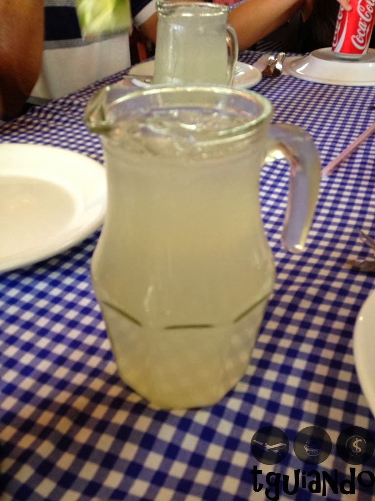 Enquanto aguardávamos por uma mesa, fizemos o pedido no balcão para que assim pudessem adiantar e não esperarmos muito depois de estarmos no salão. Estávamos em 9 pessoas e pedimos as bebidas (cerveja, refrigerante e jarra de suco de limão) e salada mista (alface, tomate, palmito, cebola, ervilha e azeitona).