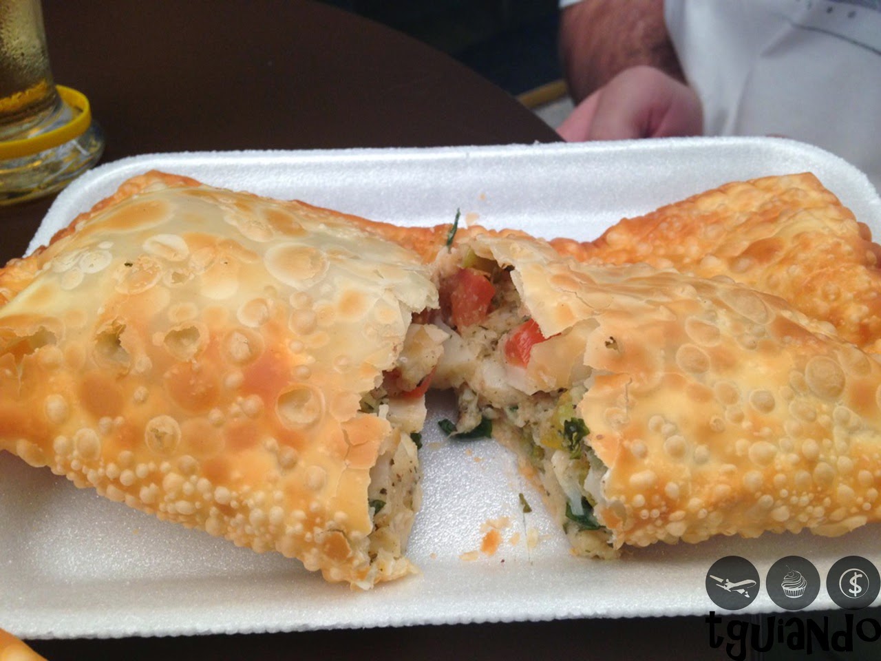 Neste último dia que estivemos lá, escolhemos um pastel de calabresa com mussarela de búfala, um de palmito e um bolinho de bacalhau.