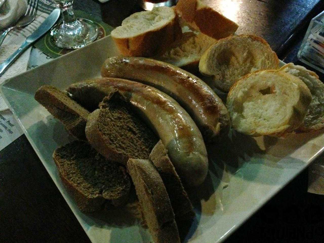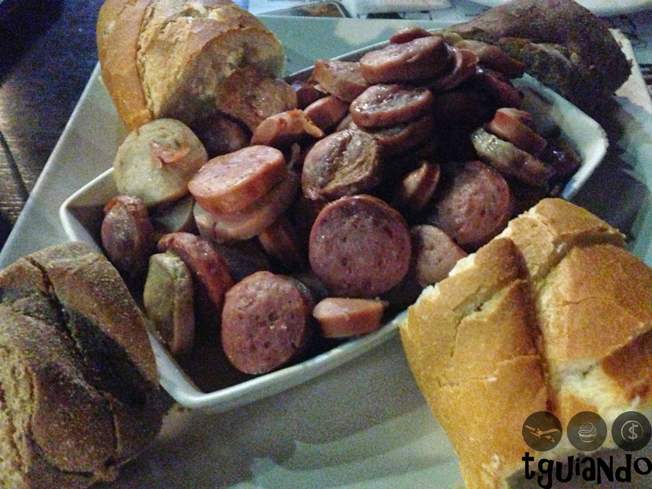 Na sequência, por R$ 26,00 pedimos uma Kalbsbratwurst (salsichão de vitela grelhado na chapa, com cesta de pães, mostarda amarela e escura), Würste 4x1 (salsichas cervela, shüblig, Kalbsbratwurst e Frankfürter cortadas em rodelas e servidas quentes), R$ 29,00, e por fim, Auf Deutsch Gibt's Nicht (pastéizinhos de carne, queijo e calabresa), R$ 21,00.