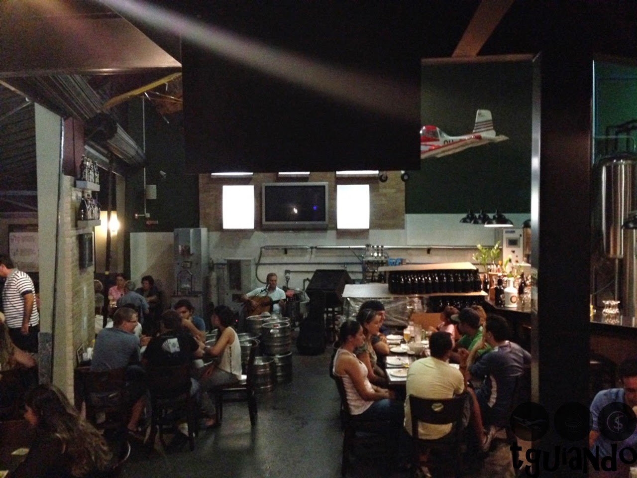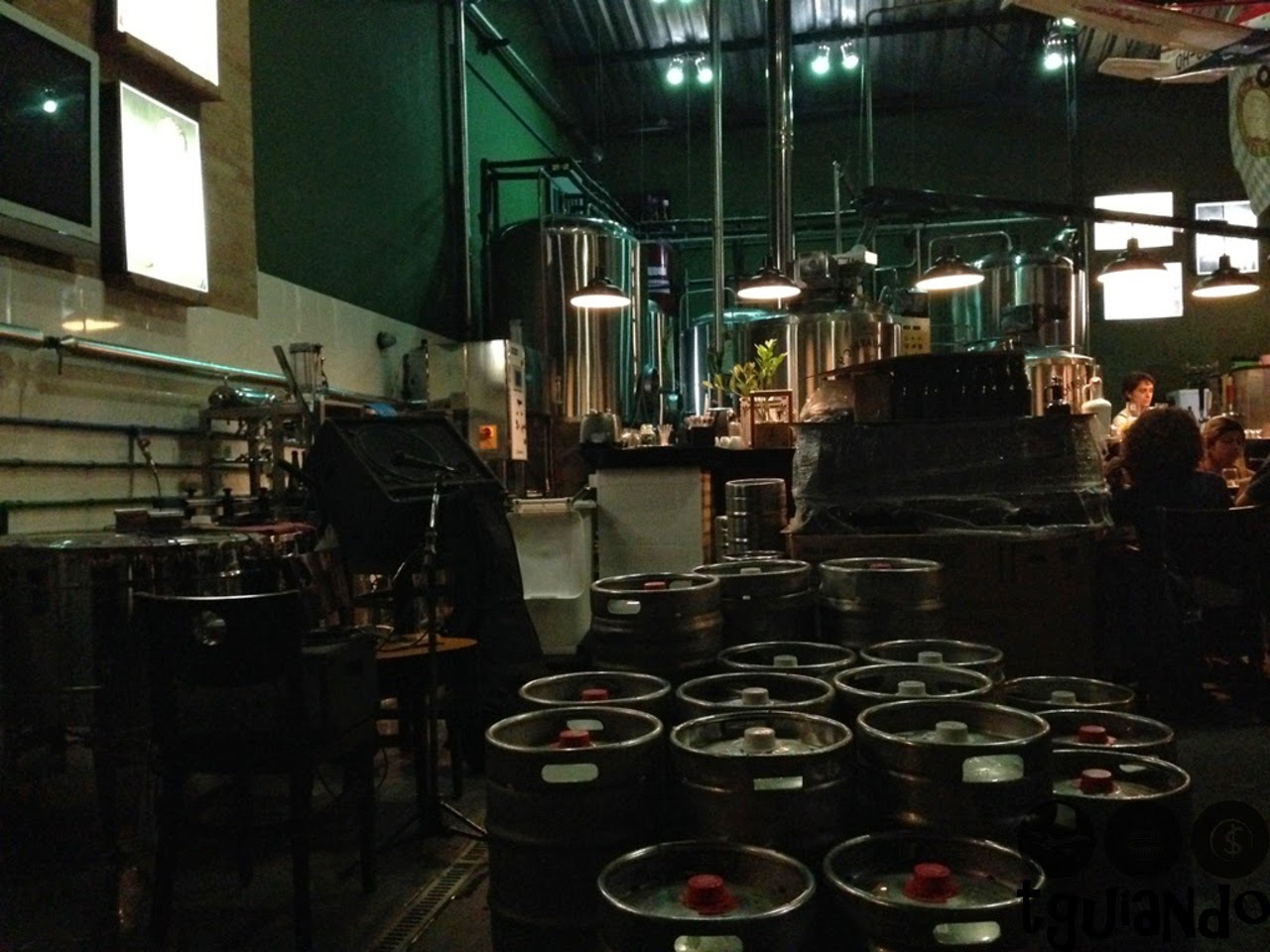 Estivemos em um bar em Itatiba, onde as cervejas são artesanais e a cervejaria fica no próprio estabelecimento, atrás do balcão.