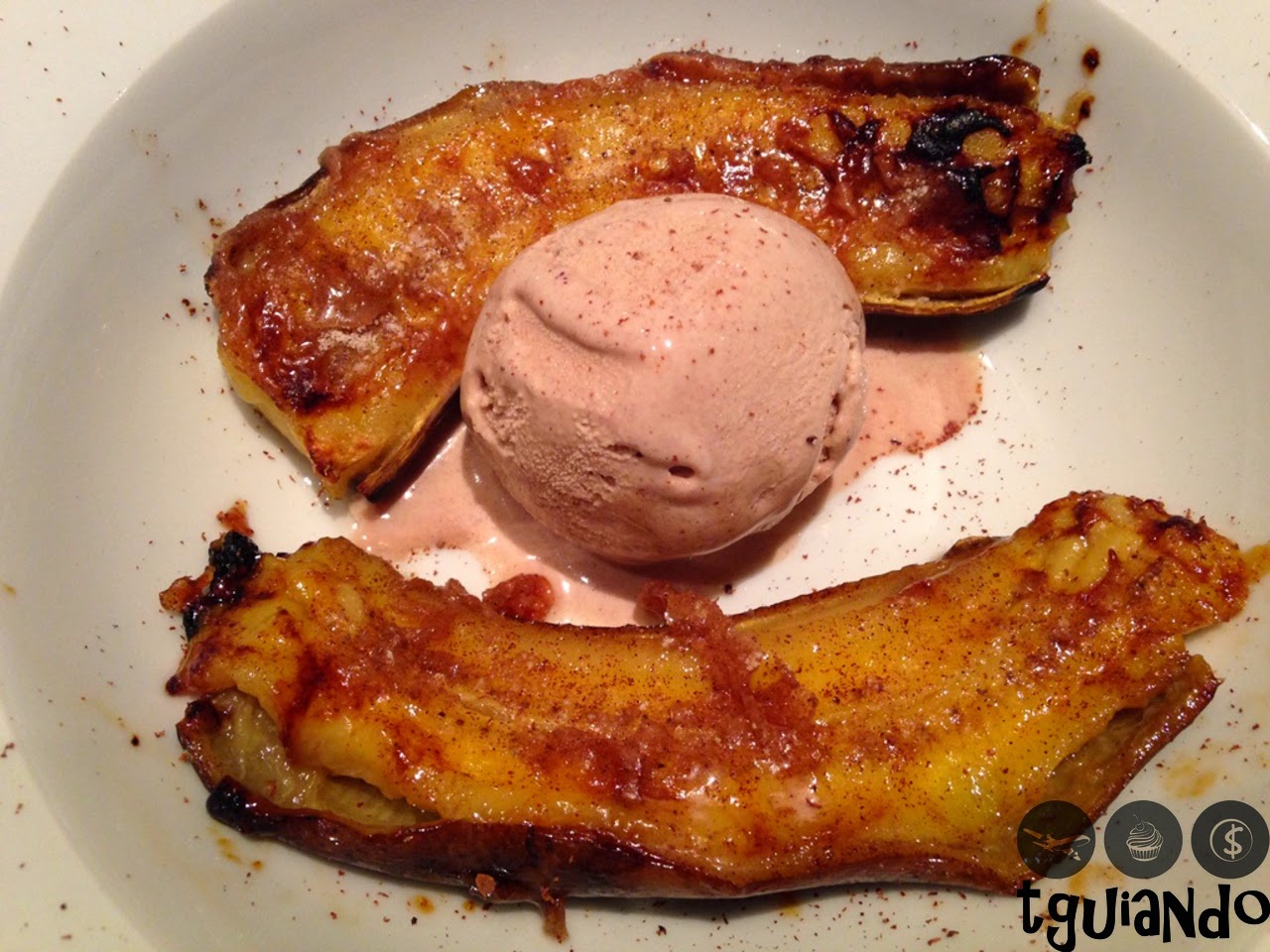 De sobremesa, optei pela Banana Al Forno a Legna (banana São Tomé caramelada ao forno à lenha, acompanhada de sorvete de canela) e Tiramissu. A primeira sobremesa já havíamos pedido da outra vez, estava gostosa, porém não foi tão apresentável quanto a outra.